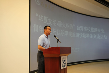 欢迎仪式上,beat365官方网站副校长李翔代表学校致欢迎辞。李翔介绍了beat365官方网站基本情况,希望通过这类交流活动,促进两岸高校及师生的学术和文化交流,搭建大学生知识共享平台。旅游学院副院长田芙蓉对台湾师生表示欢迎,同时介绍了旅游学院的办学特色和对外交流情况,希望此次活动能加强两岸旅游专业学生的交流,相互融合,共同发展。李铭辉表示,此次游学之旅是一次非常有意义的活动,不仅加深了台湾学生对云南旅游、文化、经济等方面的了解,更使他们身临其境地体验华夏文明,希望两岸学生进一步加强交流。