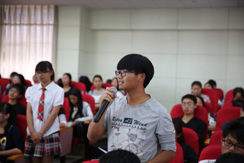 在发善心谈感悟互动环节中,师生踊跃发言,畅谈感悟。“管老师的支教经历,感人肺腑,你是我们同龄90后的榜样。你从江西来到云南贫困山区支教,在平凡的支教岗位上,用爱无私奉献着青春却从不言悔的精神给社会带来了正能量,也给这片多情的土地带来了温度,让我有了未来的方向,有了前进的动力。作为免费师范生的我将来还有什么理由不扎根家乡农村教育呢?”来自数学系2014级数学与运用数学专业师范二班的高天鸿感言。