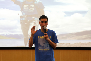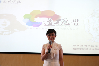 讲故事环节,来自江西省赣州市支教云南省怒江州独龙江乡龙元小学的青年志愿者管观锋演讲的《支教与大学生活》,讲述了他到云南省怒江州支教的欢乐、苦恼、感动、希望和大学生活的亲身经历与成功经验,道出了他“教育和文学是我一生的梦想!我知道这条路很长,但我将执着地前行”的人生梦想。面对乡村条件的艰苦,生活上的困难,他依然选择了坚守;面对山区孩子学习基础差、厌学等现状,他选择了用爱引导和关怀他们,最终,他赢得孩子们的欢迎。“直到今天,我一直在想,什么是志愿者,什么是令人感动的老师。我想:志愿者就是一面旗帜,一面代表着某种光芒的旗帜。我作为一个老师,本来是来这边教育他们的,但是教得越久我发现我能教他们的越来越少,而他们能教我的越来越多。当地少数民族的正直、质朴、纯真教育着我、感染着我。支教老师的使命就是偏远山区传播优秀的文化知识,然后在回去之后传播这边优秀的文化、人格品质。”管观锋深情地说。同时,管观锋还与大家一起分享了他大学学习生活的成功经验。他说,学习要有扎实的基本功,要学会记笔记、多看书、坚持兴趣爱好,要积极参加社会实践。在台上,看似瘦小的他,却散发着一种力量,一种在支教路上执着前行的力量。活泼开朗的性格、幽默诙谐的表达方式,使得现场气氛热烈,在场的同学们听得津津有味、受益匪浅。