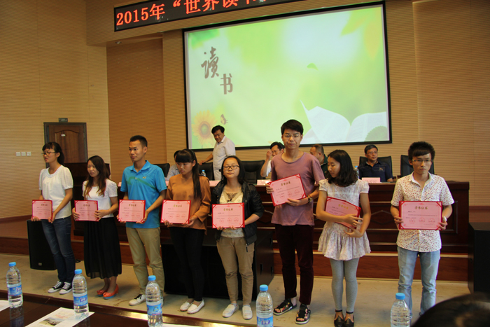 会上,孙勇宣读了学校关于表彰2015世界读书日系列活动“阅读之星”及“经典诗文诵读”等比赛获奖同学的决定,并向获得学校“阅读之星”的10名同学颁奖。刘海发为获得院系“阅读之星”的18名同学颁奖。
