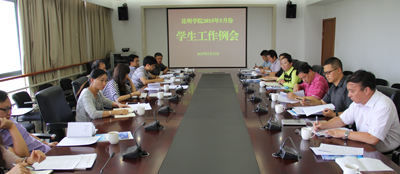 5月13日下午,学校在办公楼411会议室召开5月份学生工作例会。学校党委副书记孙勇,学生处、保卫处、校团委领导,各院系党总支副书记共20余人参加了工作例会。