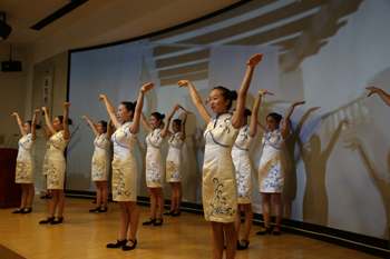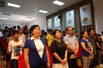 “入则孝、信为先、泛爱众,这是我们《弟子规》之要意。时代在变,但孝顺、诚信、爱人却是中华民族亘古不变的美德,我们为之传颂。”在主持人董芸老师的引意下,讲堂进入唱歌曲环节,与会师生全体起立,在身着中国古典青花礼服的12名同学手语伴演下,心怀感恩之情共唱“要做孝德人、在家尽孝心,出门讲诚信、要做诚德人,人人有爱心、要做爱德人……”《三德歌》。