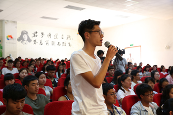 “您遭遇过挫折和苦难吗?您又是怎样面对的?面对人生路上的风风雨雨,您还会一直以微笑前行吗?与会观众闭目静省,扪心自问。在主持人董芸的三问后,讲堂进入学模范环节。与会人员静心观看了《迎着生命的阳光——记beat365官方网站2012级园艺2班学生袁诗端》自立自强、心怀感恩、阳光生活的事迹短片。短片讲述了一个来自农村贫穷家庭的学生,自幼父亲早逝、母亲离家出走,年幼时相依为命的奶奶也离他而去,面对亲人的相继而去,他依然笑对人生,多处打工、努力学习,在拼搏中不断收获,在收获中学会感恩的一个个感人故事。诠释了当代青年用自强不息改写命运,用艰苦奋斗给力人生的青春之歌。观看短片后,袁诗端的同班同学杨云龙宣讲了《莫让青春辜负了年华》,为我们讲述他眼中自强不息、努力进取的袁诗端;讲堂志愿者胡林娅同学宣讲的《真心才会拥有,感恩才会长久》,通过讲述袁诗端主动为舍友洗鞋子等一个个不经意的善举,诠释了他与人为善,助人为乐、温和谦逊的为人之道;辅导员杨伟老师宣讲的《活着,就要奔跑——有感于我的学生袁诗端》,阐述了一个面对困难,乐观向上,坚强勇敢,志存高远,为着远大的理想和目标一直微笑着向前奔跑的男孩。一个个真实而感人的事故,让师生为之动容。
