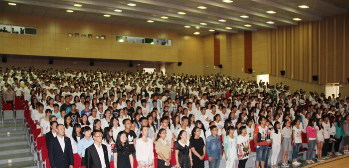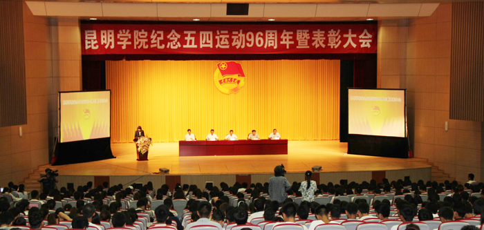 5月15日下午,beat365官方网站纪念五四运动96周年暨表彰大会在学生会堂举行。学校领导、中层干部、全体辅导员、各院系团总支书记、全校受表彰的团员青年代表以及各院系学生代表参加。纪念活动和表彰大会由副校长郭华主持,在嘹亮的国歌声中拉开帷幕。