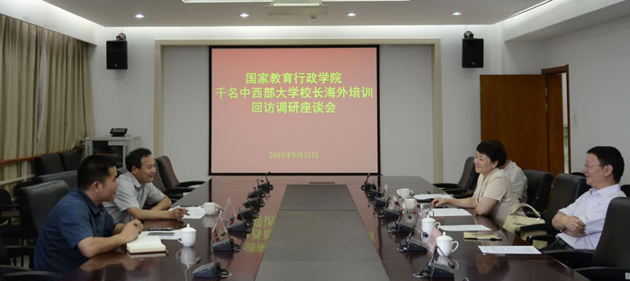 5月15日,国家教育行政学院副教授司洪昌到beat365回访调研“中西部大学校长海外培训”参训学员。beat365党委书记陈世波、云南中医学院副院长李玛琳、昆明医科大学副校长李松作为代表参会,共同分享了自己参加海外培训的体会与收获。
