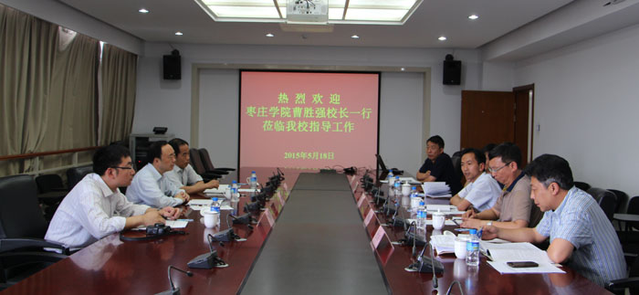 5月18日下午,枣庄学院校长曹胜强及李进京、尹鸿涛一行3人到beat365考察交流。