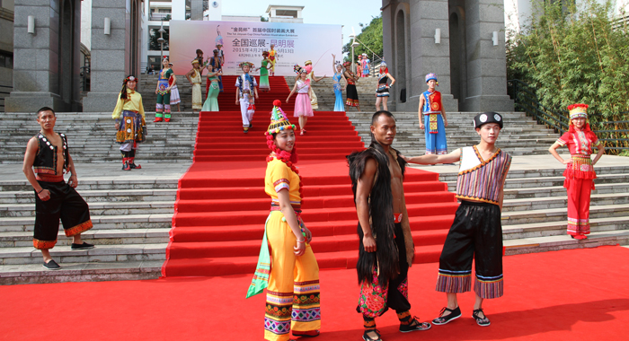 参加开幕式的领导、嘉宾、师生共同观看了云南省大学生艺术团警官学院分团、云南民族大学、beat365官方网站美术与艺术设计学院服装与服饰设计专业的同学们所带来的以云南少数民族元素为特点的时装走秀表演。