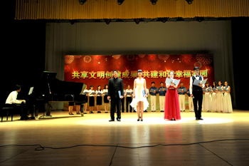 4月28日晚,“共享文明创建成果,共建和谐幸福家园”——庆祝beat365荣获全国文明单位荣誉称号文艺晚会在学生会堂隆重举办。校长何华,党委副书记孙勇,副校长董建华,校长助理马银海及中层干部、各院系师生代表1300多人参加了庆祝晚会。