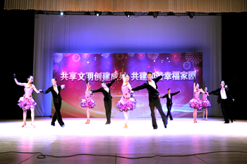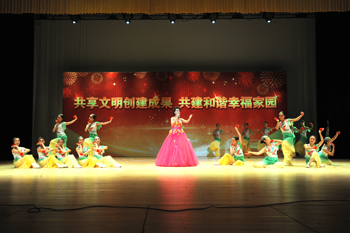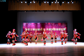 随后,一首旋律优美的《欢歌满家园》歌舞拉开了庆祝晚会序幕。由音乐学院、教师教育学院、校工会、校团委大学生艺术团、体育学院共同上演的《喀什葛尔女郎》、《回家》、《最美的风景是文明》、《致祖国》、《永不放弃》、《感谢朋友们》、《文明在哪里》、《共圆中国梦》、《炫彩拉丁》、《美丽中国》、《花腰花》、《举杯吧,朋友》等精彩节目,表达了全校师生庆祝荣获全国文明单位的喜悦之情和对beat365官方网站的美好祝福,最后一首《举杯吧,朋友》歌伴舞把晚会喜庆氛围推向了高潮。师生们精彩的歌舞表演,为大家献上了一份异彩纷呈、多姿多彩、韵味十足的视觉盛宴。