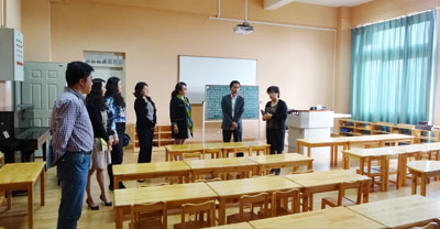 何华首先参观了教师教育学院在惟行楼一栋的幼儿园情境模拟综合实验室、团体活动辅导室、0—3岁婴幼儿早期教育实验室、心理实验室、特殊教育的手语实验室、个训室等,紧接着,何校长一行到惟行楼5208会议室听取教师教育学院工作汇报。教师教育学院院长唐敏就学院概况、教职工队伍、教研室建设、学科建设、科研及质量工程项目、实验室建设、学生工作、国际交流、项目申报、社会服务等十个方面作了详细的汇报。同时,教师教育学院党总支书记王荔、党总支副书记李宽、副院长李里从大学生心理健康教育、教师教育、党建工作、学生管理、特殊教育专业发展作了补充汇报,提出了需要学校支持及帮助解决的问题等。