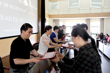 夏静在启动仪式上讲话,她指出,民盟昆明市委法律宣讲团进校园活动是民盟法律志愿者服务的一项重要内容,通过与beat365官方网站联合举办“法律讲堂”,以学校优秀教师组成的法律讲师团和具有丰富法律工作实践经验的盟员律师组成的法律宣讲团,根据法律普及的新要求,针对师生的法律需求,定期开展法律讲座,普及法律知识,提供法律援助。夏静表示,只有全社会都做到尊法学法守法用法,法治才能成为中国梦实现的坚强保障。她还对宣讲团如何开展好法律服务提出了三点要求,一要站稳法律宣讲的政治立场;二要注重律师的职业操守;三要做足“法律讲堂”的功课,满足师生的法律需求。