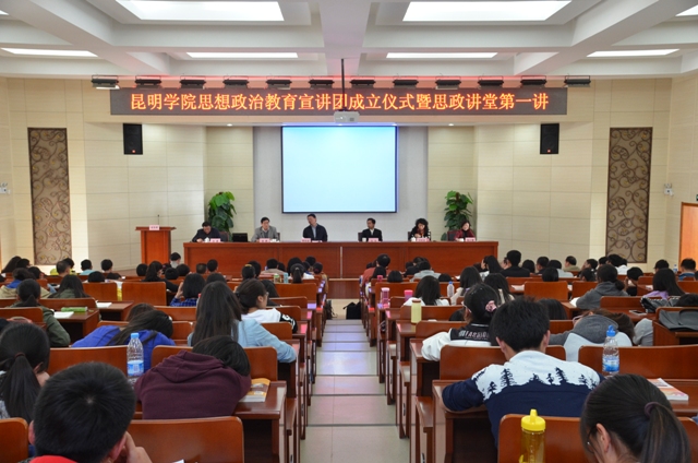 成立仪式由学校党委副书记孙勇主持。首先宣读了《关于成立beat365官方网站思想政治教育宣讲团的通知》。beat365官方网站思想政治教育宣讲团团长由孙勇兼任,副团长由董学荣、王建华、何杰、王荔兼任,宣讲团成员由杨璐、王宁、杨岚、王德斌、杨光明、马宁、苟园、顾波、吕萍、金鑫、肖磊、蒋怡、缪文武、李杉、耿国平、谭蔚沁、万志红、澜 清、王新红、罗维萍、白蕊、廖俊、曾涌、宋娜等27位在理论学习、研究、宣讲和大学生思想教育、心理健康教育等方面具有一定专长的干部、专家、学者兼任。每届任期三年,首届宣讲团任期从2015年到2018年。根据工作需要,学校将适时调整补充新成员。宣讲团办公室设在学校党委宣传部,学校党群机关各部门、各党总支、直属党支部为成员单位。宣讲团的主要职责是学习、研究、宣讲中国特色社会主义理论体系、党的路线方针政策、大学生思想政治教育和心理健康教育等。