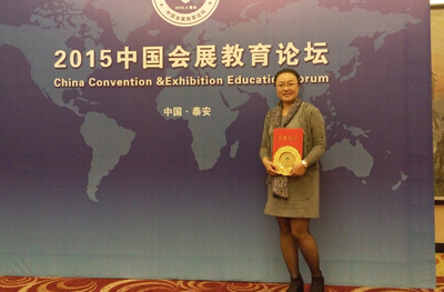 论坛特邀行业专家、教育专家、会展领军人物一道共聚泰安,谋会展之略,全面分析在新的经济形势下,会展发展与人才定位培养的新思路和新手段,缓解高校人才输出与市场人才需求脱节的结构性矛盾。教育部高等学校旅游管理类专业教学指导会委员马勇教授、张河清教授、北京第二外国语学院经贸与会展学院院长刘大可教授、上海对外经贸大学蓝星教授、台湾方圆会展管理有限公司执行长柯树人先生等海内外会展教育的知名专家学者做了精彩的演讲。在会展院校院长联席会议上吴跃辉就beat365旅游学院多年来从事会展管理教育作出的成绩和面临的困惑做了大会发言,得到与会各位会展专家的一致好评,beat365刘红老师凭借其在会展管理教育中孜孜不倦地耕耘荣获了2015中国会展教育论坛优秀人物奖。