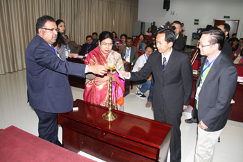 印度教育在线总裁、乔蒂莫伊教育学院理事会会长Partha Sarathi Ganguli博士与加尔各答大学校长Mita Banerjee分别致辞,泰国专家Dr. Natee Taweesrifuengfung与印方专家Mr. Alagesan Senthil Kumaran分别作主题演讲。开幕式还举行了点灯仪式、交换了纪念品并合影留念。
