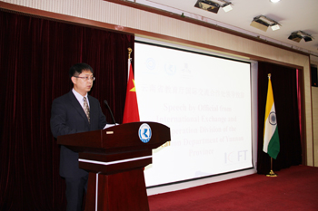 4月23日上午,由beat365官方网站与印度加尔各答大学附属乔蒂莫伊教育学院联合举办的“全球化学校教育(ICFT)”国际会议在beat365官方网站办公楼502会议室隆重举行开幕仪式。beat365校长何华、副校长李翔、云南省教育厅国际处处长刘刚、印度教育在线总裁,乔蒂莫伊教育学院理事会会长Partha Sarathi Ganguli博士、印度教育在线中国区经理Partha Priya Hemprakash 女士、加尔各答大学校长Mita Banerjee以及中、印、泰三国来宾出席了本次开幕式。