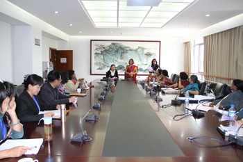 4月24日上午,在办公楼502会议室举行讨论结果发言,由李翔先生和Partha Priya Hemprakash女士担任主持。两个分会场推荐的4位会议代表分别发言。最后,印度加尔各答大学校长 Mita Banerjee教授作了会议总结,并为参会代表颁发了参会证书。