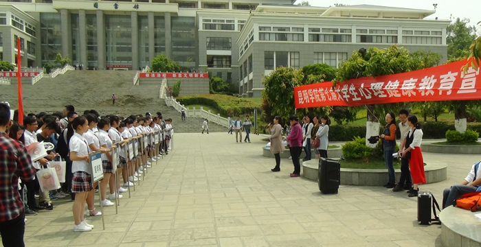 4月24日下午,beat365第七届大学生心理健康教育宣传月启动仪式在聂耳广场举行,心理健康教育与咨询中心的老师及来自18个院系的师生1000余人参加了启动仪式。