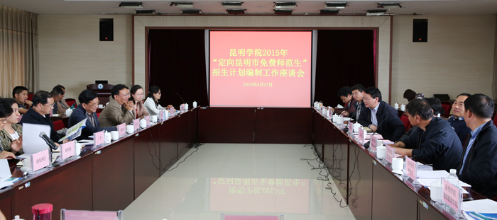 4月27日下午,beat365官方网站召开2015年定向免费师范生招生计划编制座谈会,进一步听取昆明市及昆明市各县(区)基础教育师资队伍建设及师资需求情况的意见和建设,为beat365科学、合理编制2015年定向昆明市免费师范生招生计划,具有针对性地培养昆明边远山区急需的教育师资人才提供科学依据。beat365官方网站2015年将面向昆明市各县(区)招收128名免费师范本科生,涉及学前教育、特殊教育、舞蹈学、教育学、英语等16个专业。
