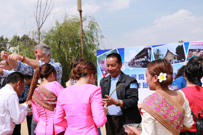 活动最后,老挝的留学生们邀请在座的师生们一起上台学跳老挝传统舞蹈,并将鲜花赠送给参与活动的老师们,祝老师们老挝新年快乐。活动在老师们为老挝学生泼洒祝福之水和互送祝福之语中圆满落幕。