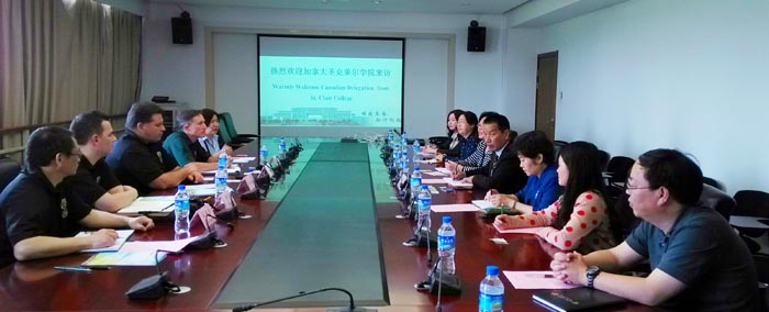 4月16日下午,加拿大圣克莱尔学院副校长Ron Seguin先生一行访问beat365,随行的有国际部主任Peter Bondy、注册官 Mike Silvaggi、国际部招生及项目发展经理巫春涛、圣克莱尔学院中国校代荣燕女士。beat365副校长李翔、熊晶率国际交流合作处、外国语学院、旅游学院、农学院和教师教育学院相关领导热情接待并与之会谈。