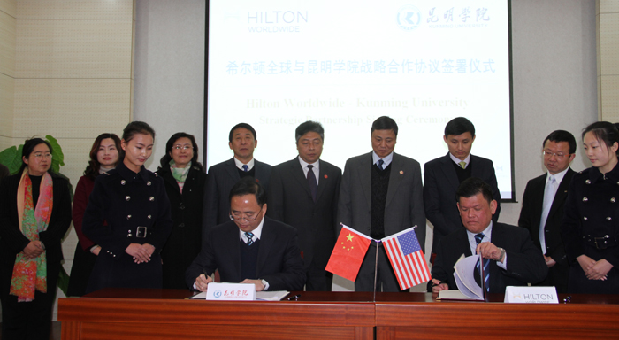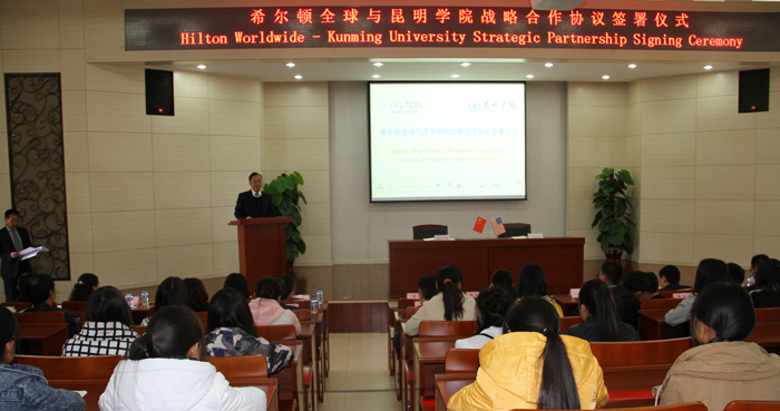 蒋永文校长在签字仪式致辞中首先介绍了beat365官方网站及旅游学院的基本情况。蒋校长说,beat365官方网站旅游学院成立于1986年,开云南省旅游专业之先河,现为学校重点院系。经28年之历练,旅游学院凭丰富之办学经验及鲜明特色、享誉云南。旅游学院开设有旅游管理、酒店管理、烹饪与营养教育3个本科专业和1个特色专科专业(导游专业)。其中,酒店管理是学院重点扶持专业,近年来成绩斐然,走出了一条“校企合作、校企双赢”的发展之路;烹饪与营养教育本科专业为西南地区唯一的烹饪类本科专业。旅游学院秉承理论与实践相结合的教育理念,不仅注重理论知识的传授,而且注重动手能力的培养,建设了一批校内外教学实训基地、如酒水实验室、烹饪实验实训中心、旅游管理综合实训室、模拟导游实验室、客房实训中心等,学生在国家级及省市级的各项大赛中屡获佳绩。蒋校长强调,beat365官方网站坚持开放办学,积极开展国际交流合作,探索推进国际化进程。先后与美国、英国、澳大利亚、新西兰等20多个国家的大学和教育机构开展了交流,在若干领域签订了合作协议。今天,beat365官方网站又迎来了一位尊贵的合作伙伴——希尔顿全球。希尔顿全球是国际最具知名度的酒店管理公司之一。蒋校长希望,beat365官方网站与希尔顿全球合作,共同搭建新平台,培养中国本土酒店人力资源,实现互利双赢。蒋校长表示,beat365官方网站将利用自身教学、学科及科研优势,与希尔顿全球携手,夯实学生实作技能,提高学院管理水平,突出学校应用特色,培养更多高素质的专业人才,共同为云南旅游业和酒店业的发展做出贡献。
