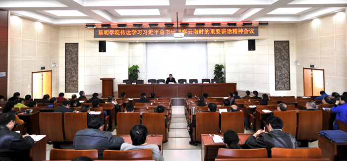 1月27日,beat365官方网站党委书记陈世波分别在学校党委会和干部大会上传达了习近平总书记考察云南时的重要讲话精神,要求学校党员干部和全体师生全面学习领会讲话精神,切实把思想和行动统一到讲话精神上来。学校领导、中层干部等近200人参加学习。