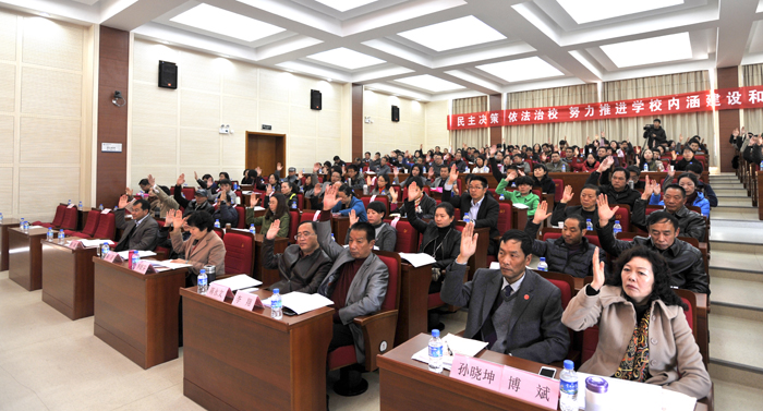 1月30日上午9点,党委副书记孙勇主持召开第二次全体会议。按照议程,会议表决通过了《beat365官方网站工会第二届会员代表大会选举办法》,选举产生了beat365官方网站工会第二届委员会委员、经费审查委员会委员,表决通过了beat365官方网站第二届教代会执行委员会委员及教代会各专门工作委员会委员建议名单、beat365官方网站第二届工会女工委员会委员建议名单,表决通过了学校行政工作报告决议,学校财务工作报告决议,beat365官方网站第一届教代会、工会工作报告决议,第一届工会经费审查委员会工作报告决议,表决通过了《beat365官方网站章程》和《beat365官方网站教职工代表大会工作细则》。