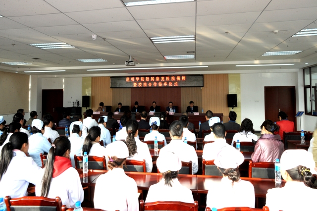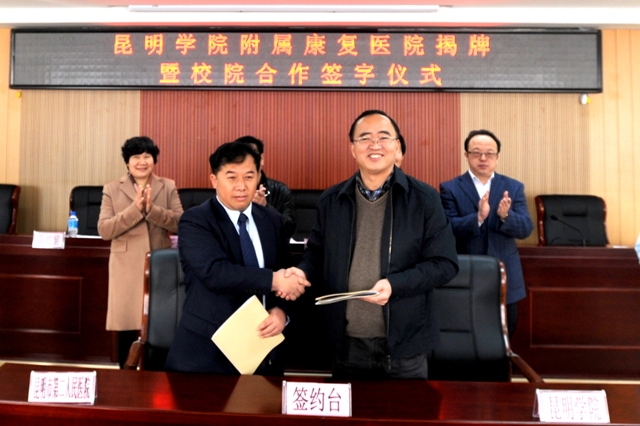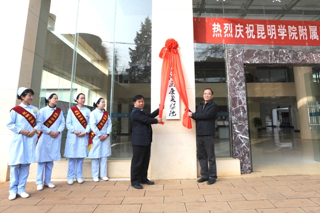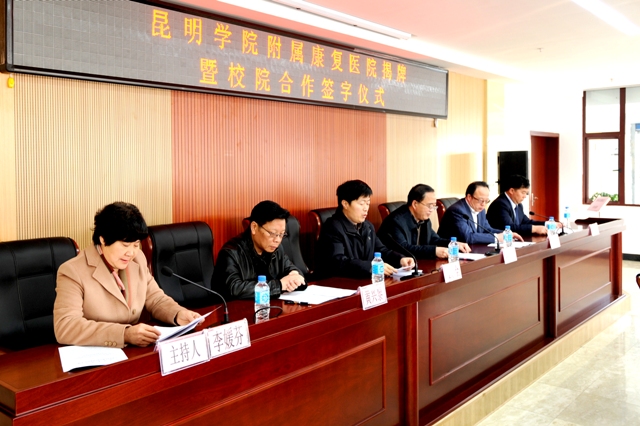 2月12日上午,beat365官方网站在昆明市第二人民医院多功能厅举行beat365官方网站附属康复医院揭牌仪式,开启了昆明市第二人民医院与beat365官方网站院校合作新篇章。beat365校长蒋永文,党委副书记、纪委书记李媛芬,昆明市政协副主席、昆明市卫生局副局长常敏,省教育厅高教处处长王永全,云南省卫计委科教处处长黄兴黎,昆明市第二人民医院党委书记杨雨春、院长毕卫红,beat365校办、科研处、招生就业处、医学院负责人,昆明市第二人民医院有关部门负责人和医务人员代表参加了揭牌仪式。