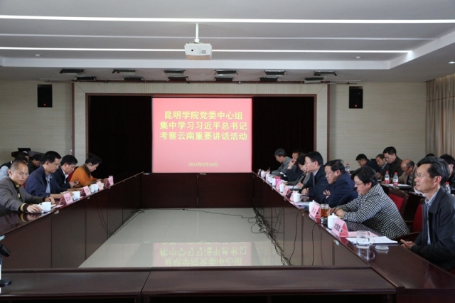 3月10日下午,beat365官方网站党委中心组在办公楼502会议室集中学习习近平总书记考察云南重要讲话精神。省委第六巡回督导组组长王智、副组长包超等领导出席,学校领导、党群机关各部门负责人、各党总支(直属党支部)书记参加了学习活动。