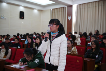 聆听了字老师们的故事后,讲堂进入发善心谈感悟互动环节。学生踊跃发言,畅谈感悟。“与您们同龄的人,有的走出大山,在城市过上了物质丰厚、条件优越的生活,而你们为了山区孩子却依然坚守在条件艰苦的农村、过着生活节俭的日子,你们后悔过吗?”来自教师教育学院2014级免费师范生徐振萍提问说。字家胜老师坚决回答道“不后悔。生活的窘迫,工作的艰辛,丝毫没有动摇我教书育人的坚定信念。”来自外国语学院2014级英语专业免费师范生毕芩冬感言:“老师们把自己的精力全都放在教书育人上,对学生,家长负责。尽管条件不好,生活艰苦,但你们依旧选择了这平凡的岗位,再苦再累不掉泪,再难再险不放弃,默默地燃烧自己照亮别人。您诚挚的心灵是孩子情感的钥匙,高尚的师德是孩子心灵的明镜。作为beat365官方网站的一名免费师范生,听了今天的宣讲后,让我有了前进的动力,我将把你们的精神带到我未来的三尺讲台。”