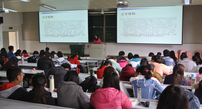 公务员、村官、选调生考前辅导培训课程分别为《申论》、《行政职业能力测验》两门课程。培训得到了beat365广大学生的积极响应,报名踊跃,截止到培训开始为止,共有17个院系的600余名学生报名。