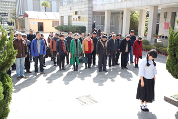领导干部们来到“一二•一”运动四烈士墓前,全体肃立默哀。默哀毕,大家顺序环绕四烈士墓一周,瞻仰、愐怀先烈。