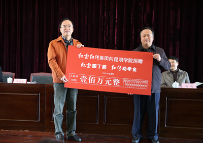 仪式上,范晓厂长代表红云红河集团昆明卷烟厂向beat365官方网站捐赠100万元奖教助学金,蒋永文校长代表beat365官方网站接受捐赠。