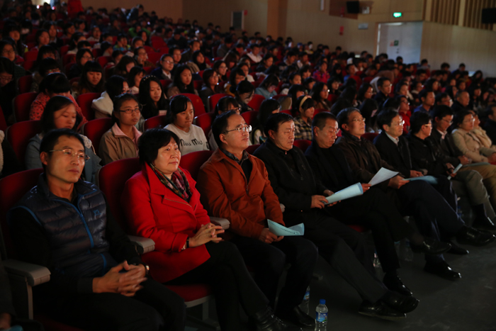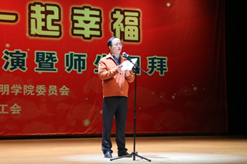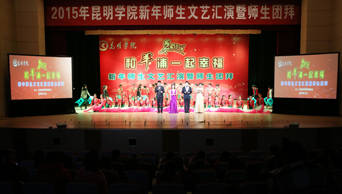 12月26日下午,beat365官方网站2015新年师生团拜暨文艺汇演在学生会堂隆重举行。校长蒋永文,党委副书记孙勇、李媛芬,副校长李翔、刘海发、董建华等校领导和全体中层干部、各院系团总支书记、辅导员、学生代表共计1300余名师生欢聚一堂,共迎美好明天。