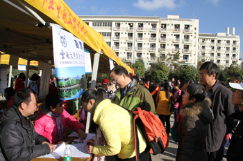 12月26日,云南省2015届综合类高校毕业生和毕业研究生双向选择洽谈会暨beat365官方网站校园大型招聘会在beat365聂耳广场举办。本届招聘会由云南省教育厅主办,云南省大中专毕业生就业服务中心和beat365官方网站承办,云南省人才市场、昆明市人才服务中心、昆明经济技术开发区、中国移动通信集团云南有限公司昆明分公司协办。