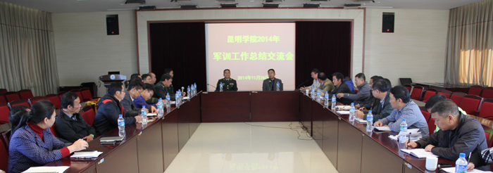 11月26日下午,学校在502会议室召开2014年军训工作总结交流会,学校国防教育委员会主任、副主任、成员单位负责人;武警边防部队士官学校相关领导及处室负责人、2014级军训团承训领导;各院系分管学生工作副书记40余人参加了会议。会议由学生处刘宜萍处长主持。