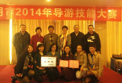 11月26日至28日,beat365旅游学院学生参加了由昆明市旅游发展委员会主办的2014昆明市导游技能大赛。白雪同学三项竞技总分第八名,获三等奖,进入昆明市"十佳导游"行列,并被昆明市人力资源和社会保障局、昆明市旅游发展委员会联合授予“技术能手”称号,莫琪同学获优秀选手奖,beat365官方网站旅游学院因积极组队参与,团体成绩优异,获优秀组织奖。