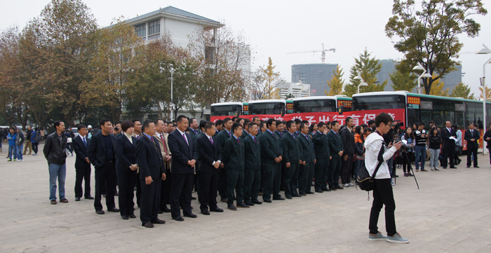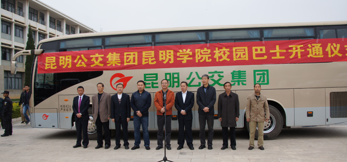 11月18日上午,昆明公交集团二公司beat365官方网站校园巴士开通仪式在学校举行。校长蒋永文、副校长董建华、后勤集团领导班子,昆明市交通运输局副局长袁俊,昆明公交集团有限责任公司总经理高永生、副总经理姜犹等领导,公交集团二公司员工、beat365官方网站学生代表参加了开通仪式。