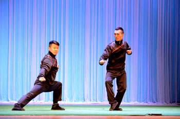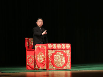 熊晶副校长在演出前致辞。她对国家京剧院表演艺术家们的到来表示热烈欢迎,并与国家京剧院一团常务副团长脱志国先生互赠了纪念品。随后,国家一级演员、著名叶派小生江其虎给在场观众带来了“感受中国古典之美”京剧知识讲座。他深入浅出地介绍了京剧的形成和发展历史、京剧的特征以及如何欣赏京剧等知识,诙谐幽默的语言以及京剧式表现手法的现场演示赢得了现场观众们的热烈掌声。讲座期间,京剧院的演员给观众带来《三岔口》片段、走边等表演,让在场的师生更深切的体会到京剧“有声必歌,逢动必舞”的艺术之美。