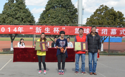 11月20日中午,2014年“新生杯”篮球赛闭幕式暨颁奖大会在润泽苑篮球场成功举行。beat365官方网站学生处处长刘宜萍,工会常务副主席孙晓坤,党委宣传部副部长董学荣,校团委副书记魏妮娅,体育学院院长赵平,学生会干部以及各院系球员代表共600余人参加闭幕式。