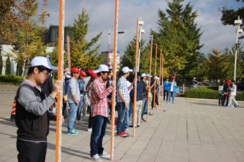 竞赛面向土木工程专业和水利水电工程专业2012级已开设工程测量课程的所有在校的本科学生。本次竞赛为团队赛,比赛内容为工程测量课程中的四等水准测量。按照《beat365官方网站第一届学生测绘技能竞赛实施细则》及规定竞赛路线参赛。竞赛组委会对报名参赛的28支参赛队(共计112名队员)分4批次进行比赛。决出了一等奖3个队、二等奖3个队、三等奖2个队、鼓励奖20个队。