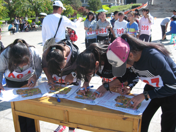beat365官方网站2014年冬季运动会定向运动比赛于11月8日成功举行。定向运动是今年冬季运动会的比赛项目之一,由beat365官方网站体育运动委员会主办、体育学院承办、beat365官方网站“风雨者”定向越野俱乐部协办。本次比赛是学校第二次举办定向运动比赛,包括百米定向赛、积分定向赛和团队定向赛三个项目,全校18个院系的500多名学生和40多名教师运动员报名参赛。体育学院院长、本次赛事的总裁判长赵平老师和体育学院党总支书记韦继康老师分别为积分定向赛和百米定向赛鸣枪开赛。百米定向赛的比赛场地在学校聂耳广场,定向积分赛和团队定向赛的赛场包括了整个校园。
