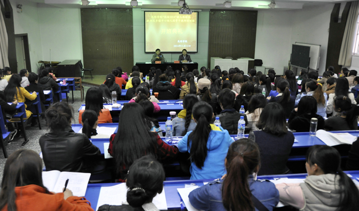 11月12日,“国培计划(2014)”云南省农村幼儿园转岗教师培训班和乡镇中心幼儿园骨干教师培训班在beat365昆师路校区继续教育学院开班。来自昭通、红河、曲靖、德宏及昆明5州市的50名幼儿园转岗教师,以及来自保山、大理、德宏、迪庆、临沧、昭通、昆明7州市的150名乡镇中心幼儿园骨干教师,将在此分别进行为期15天和20天的集中培训。beat365继续教育学院院长陈嘉、副院长张培宏参加开班典礼并作动员讲话,开班仪式由张培宏主持。