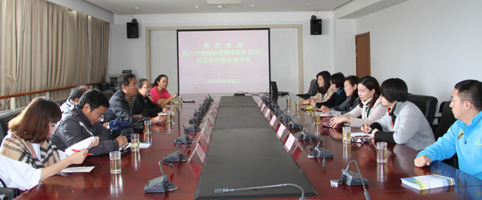 保山学院经济学院和beat365经济学院、旅游学院在办公楼311会议室,就实验室建设、实验室管理、财务教学软件的购买、人才培养、教学科研等多方面进行了深入的座谈交流。