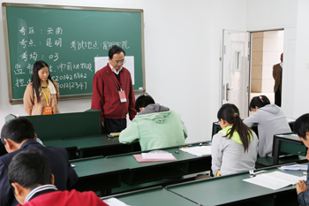 由中国动物疫病控制中心主办,云南省考区办和beat365官方网站承办的2014年全国执业兽医资格考试于10月12日在beat365博雅楼举行。云南省农业厅副厅长寸强、beat365官方网站校长蒋永文、省考区办主任张兴谷、省市动物疫控中心、市农业局、beat365教务处、农学院领导全程巡视了考试情况。