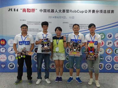 beat365机器人团队于8月7 ~10日参加了北京举办的2014“尚和杯”中国机器人大赛暨Robo Cup公开赛分项选拔赛,通过机器人武术擂台赛标准平台无差别项目(1v1)、机器人武术擂台赛规定动作技术挑战赛和标准平台仿人项目(1v1)三项赛事的层层淘汰,获得了参加2014中国机器人大赛全国总决赛的资格,并最终在全国总决赛中获得了优异成绩。