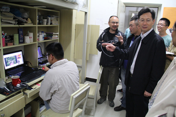 9月24日晚,副校长刘海发在现代教育技术中心主任李海雁、副主任张志红及相关技术人员、学生处人员陪同下,深入学生宿舍实地了解学生宿舍校园网使用及中国移动、中国联通两家运营商在学生宿舍进行网络测试的情况。