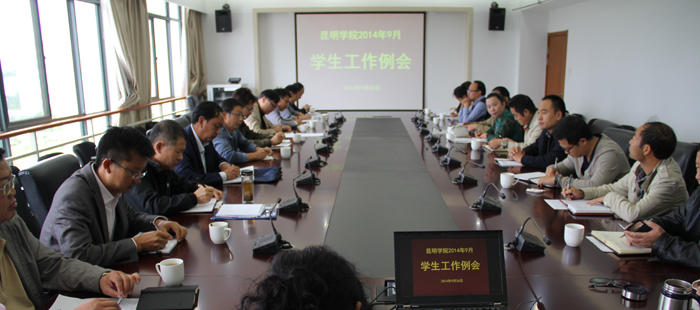 9月26日上午,学校在办公楼411会议室召开9月份学生工作例会,副校长郭华,学生处、教务处、团委、保卫处、后勤集团等职能部门的领导及各院系分管学生工作的总支副书记参加例会。