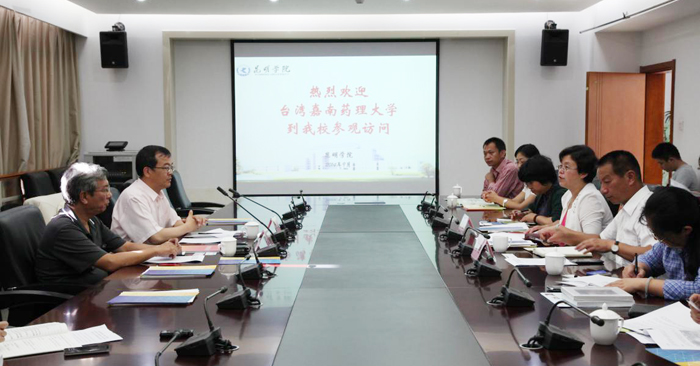 李翔副校长首先代表学校致欢迎辞并详细介绍了学校建设发展情况。嘉南药理大学董事会秘书余元杰先生介绍嘉南药理大学办学情况后,该校生态中心主任、环境永续学院环境工程与科学系荆树人教授介绍了该中心在台湾地区、大陆以及泰国、菲律宾等地所做的生态实践。滇合中心主任钱春萍副教授也全面介绍了中心在参与滇池治理、科研研究、服务地方和环境教育等方面的情况。随后双方就两校可合作领域进行了深入沟通交流,也就择时签署校级合作备忘录达成了协议。