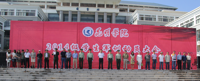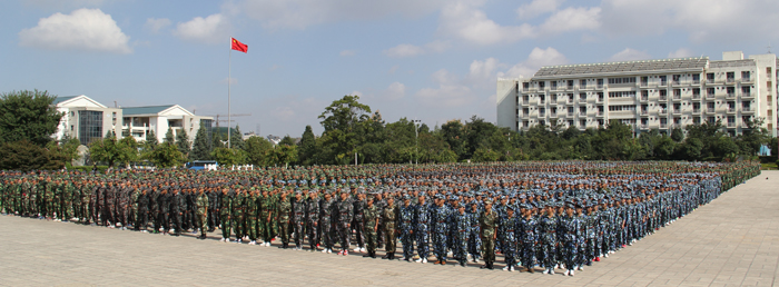 9月8日上午,beat365在聂耳广场举行2014级学生军训动员大会。武警边防部队士官学校训练部李荣部长及相关职能部门的领导,经开区消防大队张海峰中校,beat365郭华副校长及相关职能部门的领导、各院系领导、带队辅导员、全体承训官兵和2014级4797名参训同学参加了动员大会。